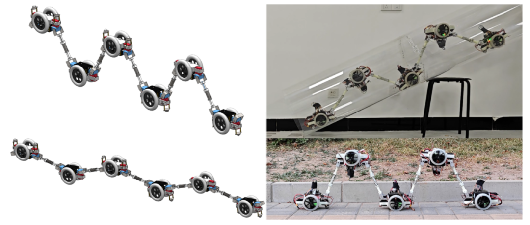 项目介绍: Robochain是一种串联管道检测机器人,创新设计了 一种轮簧杆单体结构,可以根据实际需要通过手风琴连接模式构成多体机器人;提出一种新型的轮杆协同控制模式 使机器人能够完成转向、变形等功能;通过电磁的吸合和分离,实现多体结构分割和单体结构自适应重构,实现复杂管道的自适应变形,提高对复杂管道网络的检测效率。