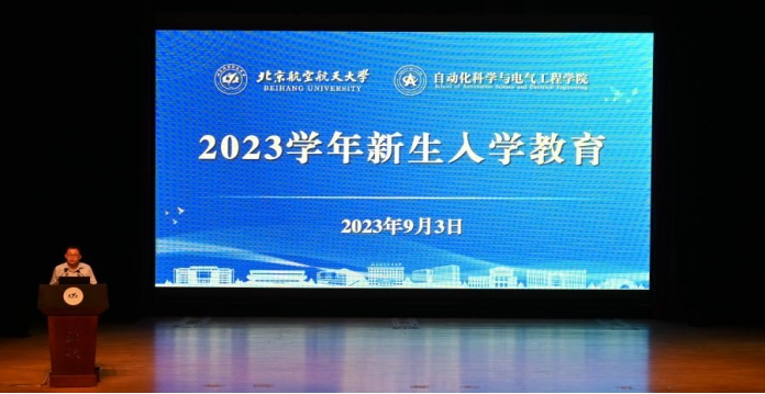吕金虎教授为新生讲授新阶段的首场思政报告。吕金虎教授告诫同学们:作为新一代的青年,应该矢志空天报国,做到厚植家国情怀、一生锤炼品德修为、注重涵养科学精神、笃行勤学实干。