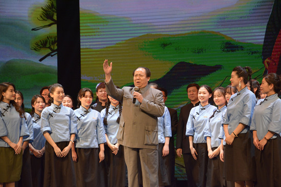 整场晚会节目形式丰富多样,有合唱、舞蹈、走秀、京剧、独唱、情景朗诵、花鼓戏等,氛围热烈而隆重。舞蹈《东方红》由湖南一师音乐舞蹈学院表演,展现了新时代的人们积极响应时代的召唤,红绸似火红红火火,坚定的信念熊熊燃烧。北大第五届毛泽东管理思想高级研究班带来的歌曲联唱《喜欢你》《芦花》《江山》《相逢是首歌》让人如痴如醉。女高音歌唱家、国家一级演员、中国国安乐团团长冯欣表演的京剧《咏梅》《沂蒙新红嫂》尽展国粹风采。旗袍秀《梦里水乡》由北大马克思主义学院第五届毛泽东管理思想高级研究班师生表演,精致华丽的旗袍、一把把诗意的油纸伞以及优雅婉约的举手投足展现出东方传统之美的独特魅力。中国国安团青年歌手、演员张柏菡演唱的《中国梦飞起来》、海政文工团著名男中音演唱家霍勇演唱的《七律长征》《快乐的马车夫》激情澎湃,唱响了主旋律。在情景表演剧《咱们的领袖毛泽东》中,由中国艺术学会副主席东方子扮演的毛泽东回到母校,那熟悉的乡音和震撼有力的话语唤起了那段一代伟人为国家繁荣、民族振兴而奋斗的红色记忆。由中国最早的和声组合之一——黑鸭子合唱组带来的联唱《我和我的祖国》《红莓儿花开》《茉莉花》声情并茂、旋律优美动人。《渔舟唱晚》由一师教师杨丹弹奏古筝、北大马院教师玄殊表演太极,以悠扬乐音和古典风韵展现中华传统文化,在宁静中感悟生命真谛。一师教师杨思思和主持人赵保乐倾情演绎的男女对唱《刘海砍樵》展现了湖南地方戏曲特色,妙趣横生。《共和国之恋》《草原上升起不落的太阳》由著名男高音歌唱家程志演唱,以磁性的嗓音和雄浑的气势表达了祖国的深沉热爱。晚会在歌舞《共筑中国梦》中圆满落幕。