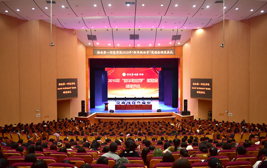 最后,杨运辉先生发表了讲话。杨运辉首先代表新华联集团总裁傅军先生及新华联集团7万名员工,向老师们致敬,向获奖学生表示热烈祝贺。新华联助学奖励金从2015年设立以来,已经奖励了150名品学兼优的学生,并产生了良好的社会效应,这些获奖同学不忘初心,勤奋学习,已有一部分顺利完成学业走出校门,走进社会,还有部分同学走进入了新华联集团工作。杨运辉谈了三点感悟与学生共勉,一是要自信,作为一师的学生要有底气和自信,积极参与职场竞争,应对人生的挑战;二是要自尊,作为学生要勇敢地参与市场博弈,更要学会挡住种种的物质诱惑,既要充分展示自己做事的狼性,更要紧紧守住自己做人的底线;三是要自强,要认识到一个人真正的强大,不仅在于他体格状、学历高、技能精,而在于他格局大、境界高、奉献多,拥有强烈的利他之心,拥有强大的造福社会的能力。一个人在社会中最终留下的不是他索取了多少,占有了多少,而看他创造了多少,奉献了多少。新华联与湖南一师的牵手既是一种机缘也是一种情结,我们已经迈出令人欣喜的一步,未来还有很长的路要走,希望有志于投身经济建设的同学来新华联一搏,尽情演绎人生的精彩。