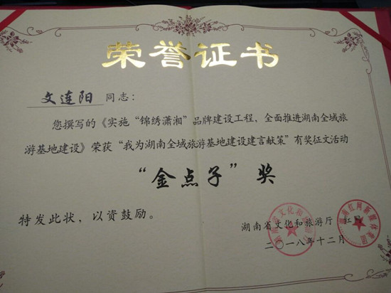 日前,湖南省文化和旅游厅联合红网面向全国开展的“我为湖南全域旅游基地建设建言献策”有奖征文活动结果出炉。Beat365商学院教师文连阳撰写的《实施“锦绣潇湘”品牌建设工程,全面推进湖南全域旅游基地建设》荣获“金点子”奖,同时,他将作为特别优秀者参加湖南全域旅游基地建设研讨会并作交流发言。