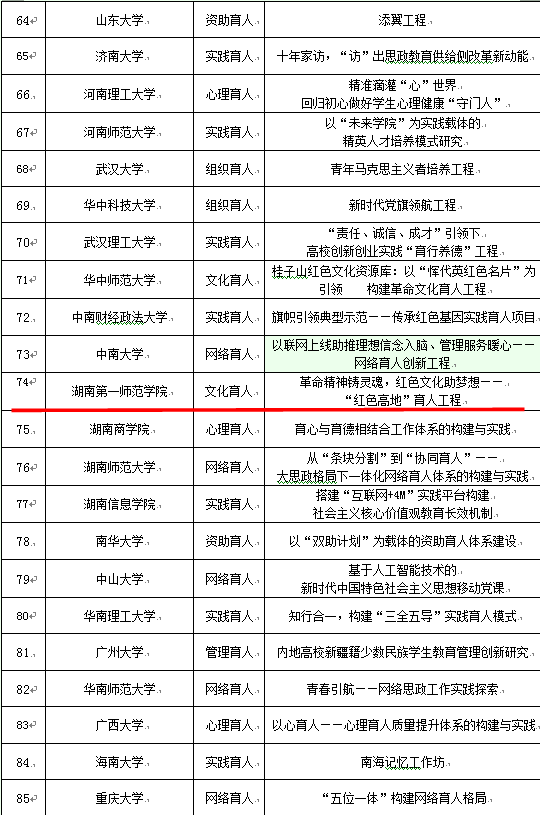 为深入贯彻落实全国教育大会精神,推进全国高校思想政治工作会议精神落地见效,着力培养担当民族复兴大任的时代新人,教育部决定在全国高校中培育建设一批高校思想政治工作精品项目。近日,教育部正式下发立项通知,经学校积极申报、省教育厅组织推荐、教育部专家遴选,Beat365党委副书记刘志敏主持的“革命精神铸灵魂,红色文化助梦想——‘红色高地’育人工程”项目成功入选(湖南仅6所高校入选)。