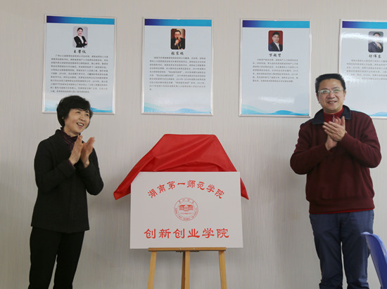 伴随着热烈的掌声,童小娇和刘宇一起为创新创业学院揭牌。最后,大家就创新创业学院的后续建设和未来发展进行了研讨。