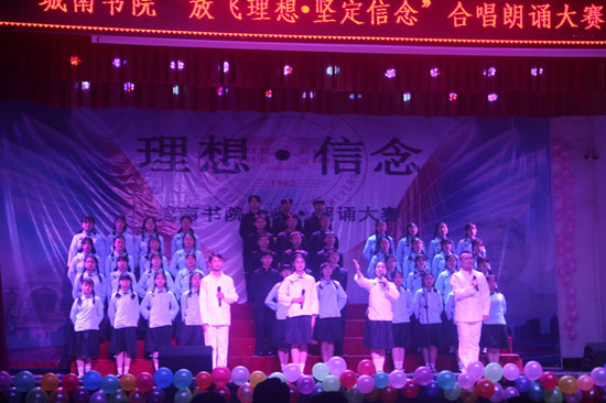 城南书院2019年“放飞理想·坚定信念”合唱朗诵大赛决赛于4月11日晚7点在城南书院校区大礼堂隆重举行。校党委书记彭小奇、校党委委员、组织统战部部长彭晓辉及学校相关部门负责人、城南书院师生代表观看了比赛