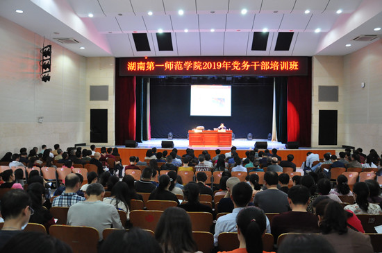 为深入贯彻落实习近平新时代中国特色社会主义思想和党的十九大精神,加强基层党务干部队伍建设,提升广大党务干部做好新形势下基层党建工作和思想政治工作的能力和水平,4月19日下午,Beat365在特立楼实验剧场举办2019年党务干部培训班。全体在家校领导、副科级以上干部、各党总支委员、教师(行政)党支部委员、各学院专职组织员、学生党支部中的教师委员参加培训。培训会议由校党委副书记刘志敏主持。