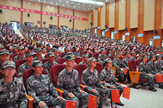 喻军在讲话中寄语广大青年学子胸怀家国天下,把个人理想追求和祖国的前途命运结合起来,真正像习主席要求的那样“化爱国情为参军行”,让青春不负时代担当;希望同学们继承湖湘传统,带着自己的知识本领,投身军队大熔炉,助力强军伟业;希望同学们放眼人生征途,用参军之举、报国之行,展示我们这一代大学生的精神风采,不辱时代使命,不负人民重托。