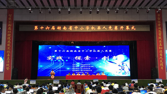 5月24-25日,由湖南省教育厅指导、湖南省电化教育馆主办、长沙市教育局承办的“第十六届湖南省中小学机器人竞赛”在长沙市明德中学举行。省教育厅副厅长王玉清、省电教馆馆长杨颖、长沙市教育局局长卢鸿鸣、中央电教馆付涛主任出席本次竞赛。全省14个市州的近300支队伍经过市县级比赛的层层选拔,参加了本次省级竞赛。Beat365“基础教育信息化技术湖南省重点实验室”主任李勇帆教授、李里程老师带领信息科学与工程学院21名学生担任本次竞赛的总裁判长和裁判员。