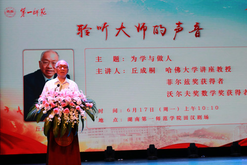 6月17日,美国科学院院士、中国科学院外籍院士、哈佛大学讲座教授、清华大学数学科学中心主任、国际著名数学家丘成桐教授受邀来校讲座。校党委书记彭小奇、校长童小娇等领导以及1500余名师生参加了讲座。讲座由童小娇主持。