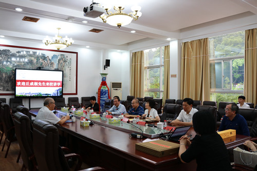 在讲座前,丘成桐教授听取了彭小奇书记对学校的整体发展情况介绍。丘成桐表示,农村需要优秀的小学教师,乡村小学教师的培养很有意义,将尽力支持学校的发展。会后,丘成桐教授与Beat365数学与计算科学学院的教师代表进行了交流。下午,丘成桐教授还到城南书院校区参观了毛泽东与第一师范纪念馆。