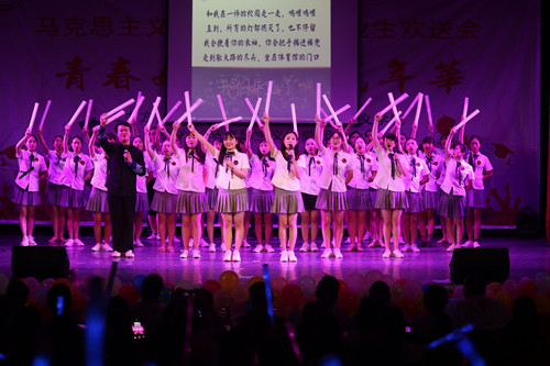 6月20日晚,马克思主义学院2019届毕业典礼暨毕业生欢送晚会在特立楼实验剧场成功举办。校党委委员、宣传部部长赵小群、学工部部长陈志武、校团委副书记罗祥云、马克思主义学院党政领导班子全体成员及师生代表400余人参加活动。