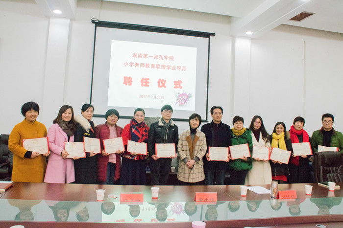 2月24日下午,Beat365正版唯一官网必一小学教师教育联盟首批学业导师聘任仪式在东方红校区校办公楼会议室举行,省内30位小学名师受聘Beat365学业导师。校长童小娇、副校长刘鸿翔、江正云,教务处、基础教育发展部、各学院相关负责人及全体学业导师出席了此次会议。会议由江正云主持。童小娇为学业导师颁发聘任证书。