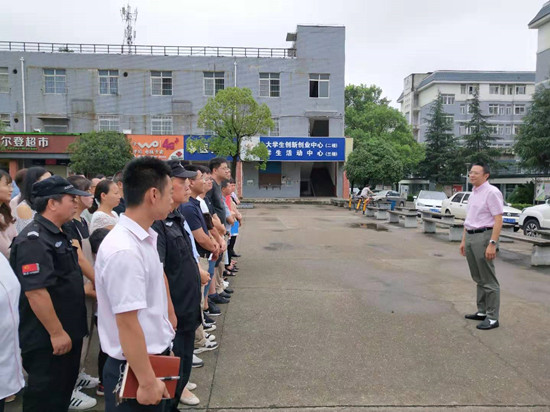 随后,检查人员分成6组,对学生公寓、教学楼、公租房、图书馆、食堂、门店、实验实训室、机房、配电房、水泵房、体育场馆、从业人员住宿点等重点要害部位的人防物防技防情况,以及汛期可能引发地质灾害的山体、校内水域进行了全面检查。