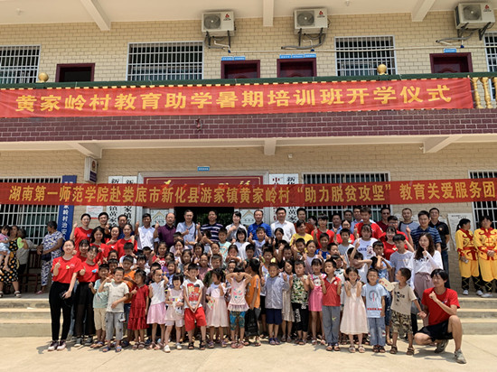 在娄底市水利局扶贫点新化游家镇黄家岭村,刘志敏副书记一行实地察看了志愿者们的住宿、就餐场地,并详细询问了志愿者们的生活、饮食情况。座谈会上,听取了该村驻村脱贫攻坚工作汇报和学生、家长、志愿者发言后,鼓励大学生志愿者在深入基层中了解村情民情,身体躬行开展实践,撰写调研报告,为当地政策提供有益的参考,积极助力脱贫攻坚和乡村振兴。志愿者们在该村开设3个班招收72名学生,并结合村情及青少年儿童需求,开设了心理辅导、安全教育、英语口语、少儿舞蹈、手工制作、体育游戏、绘画、书法等特色课程。
