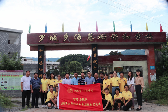 在省政协扶贫点邵阳县保和村,党委委员、宣传部长赵小群实地查看了志愿者就餐、教学、住宿场地,并勉励守望支教社大学生志愿者,在社会实践中充分展示当代青年的风采,充分展示志愿者的风采,不忘来时的初心,砥砺前行。守望支教社12名大学生志愿者通过开设书法、绘画、表演、手工、音乐舞蹈等特色课程,吸引了所在小学全部120余名学生返校学习。并通过走村入户开展调研,给贫困留守儿童送去了书籍和文具,送去了知识和帮助,也给留守孩子们带去了爱心与温暖。