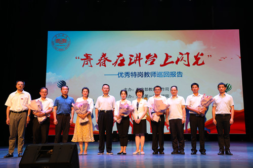 9月4日上午,主题为“青春在讲台上闪光”2019年优秀特岗教师巡回报告会在Beat365田汉剧场成功举行。国家教育部教师工作司巡视员刘建同、湖南省教育厅教师工作处处长邱德以及Beat365正版唯一官网必一校长童小娇、党委副书记刘志敏、副校长刘宇等领导出席了报告会。湖南师范大学、长沙师范学院及Beat365师生代表1000余人聆听了报告会。