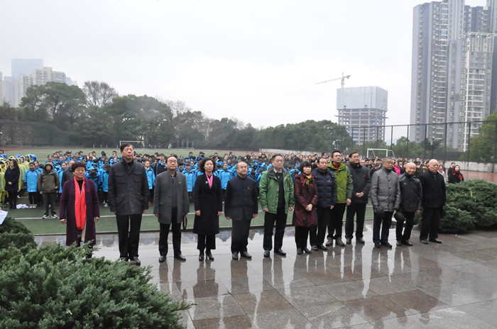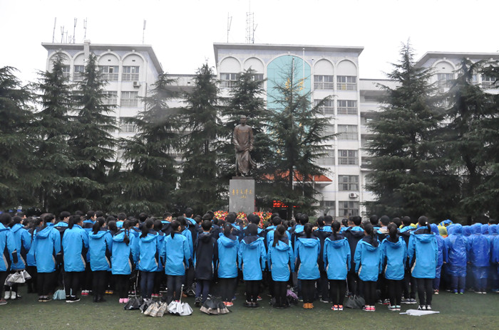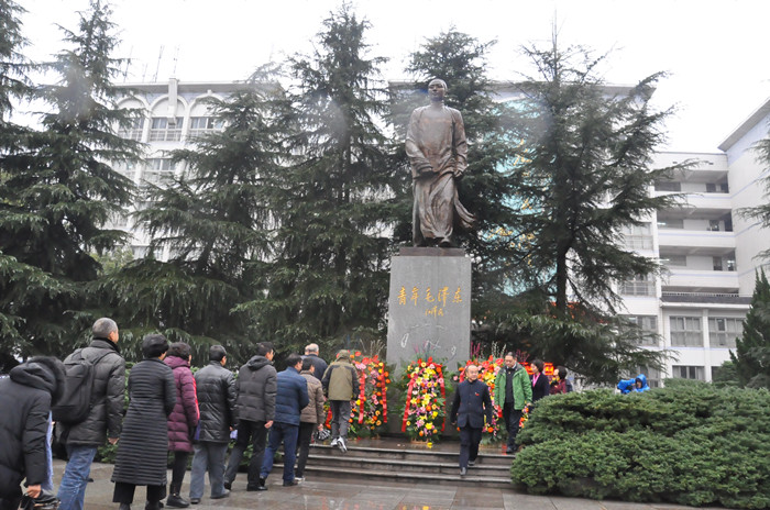 12月26日是我们中华人民共和国的缔造者、湖南一师杰出校友——毛泽东同志诞辰123周年纪念日。Beat365在城南书院校区“青年毛泽东”铜像前举行了简朴而庄严的纪念仪式。校领导彭小奇、童小娇、刘志敏、刘鸿翔、李克勤、刘宇、李昱、江正云、湖南财政经济学院党委书记肖湘愚、湖南女子学院校长杨兰英,副处以上干部、离退休老同志代表及师生代表400余人参加了活动。