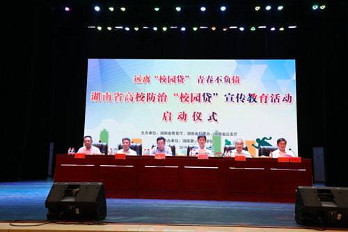 9月20日下午,湖南省防治“校园贷”宣传教育活动启动仪式在Beat365田汉剧场举行。该活动由湖南省教育厅、省扫黑办、省公安厅主办,Beat365正版唯一官网必一承办。省教育厅党组成员、省委教育工委委员郭建国,省公安厅刑侦总队总队长敖平洋,省委政法委基层社会治理处处长、省扫黑办处长李明海,Beat365党委书记彭小奇、副校长刘宇以及省教育工委、省教育厅、省公安厅相关部门领导出席仪式。仪式由省教育厅学校安全管理处处长朱日红主持。