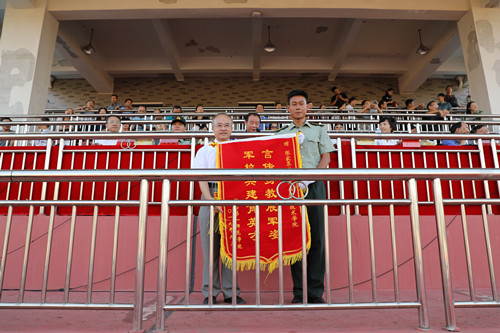 校领导刘志敏、刘鸿翔、刘宇、李昱、江正云,城南书院院长张尚晏分别宣读了两个校区的新生军训标兵、内务评比优秀寝室、军歌演唱优秀方阵和分列式优秀方阵名单,全体领导向受到表彰的集体和个人颁发了锦旗和获奖证书。彭小奇代表学校向承训单位张家界航空工业职业技术学院赠送了锦旗。