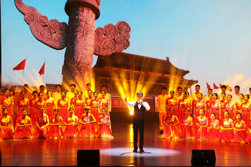 晚会尾声,全场所有的师生齐声合唱了《我和我的祖国》,为新中国七十周年献礼。