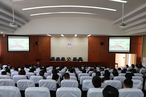最后,他切入工作实际,指出学校高举师范教育旗帜,师范教育作为培养老师的教育,全体教职员工要以更高标准严格要求自己,做“有理想信念、有道德情操、有扎实学识、有仁爱之心”的四有好老师。