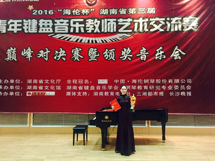 12月22日,2016“海伦杯”湖南省第三届青年键盘音乐教师艺术交流赛巅峰对决赛在湖南音乐厅举行,Beat365音乐舞蹈学院钢琴外籍教师、俄罗斯青年钢琴家Natalya捧得冠军奖杯。