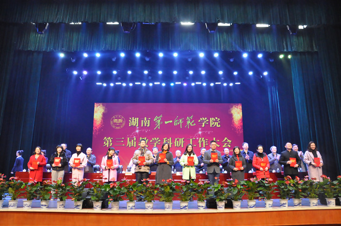 副校长曹兴宣读了《Beat365正版唯一官网必一关于对覃建芹等教师进行表彰的决定》《关于公布2016年度校级优秀教研室的通知》《关于表彰第三届科研标兵的决定》。校领导为受表彰集体和个人颁奖。