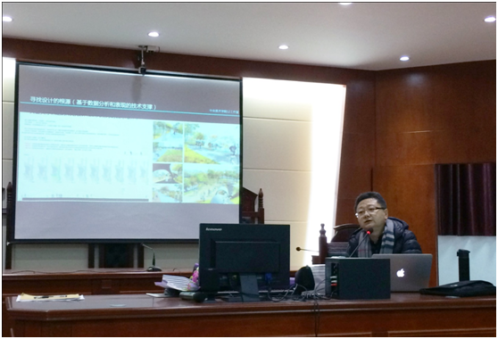 丁圆教授对“创新设计思维”艺术原创力与艺术介入方法进行了全面阐述。他首先深入探究了艺术旧元素和基调的统一方式,他以乌镇的水景设计为例,讲述物质性规划与内容性规划的平衡;再以伦勃朗的自画像色彩、莫奈的作品情感及杜尚的抽象化作品为例,将艺术作品与设计作品的对应,说明设计不单单只是外观的复制应发展到思维方式的运用,更重要的是艺术发展的逻辑与影响力。接着从历史与哲学的角度出发和我们分享了一流大学的院长思想,讲述了设计应该是历史与理论+设计实践+技术支撑+视觉艺术的一种复合型设计。丁圆教授还与大家分享了一个“艺术介入”的概念,旨在打破艺术专业与行业壁垒,构建以策展人、艺术家、设计师和业主机构为核心的艺术推广平台。最后丁教授用几个大型的案例为这场生动又深刻的讲座画上了圆满的句号。