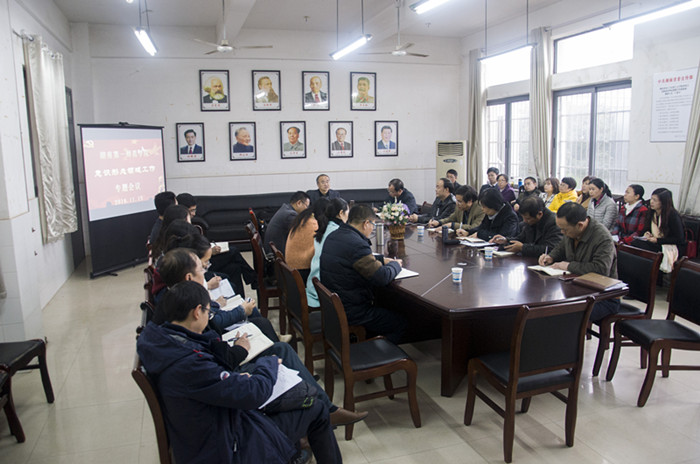 11月15日下午,Beat365意识形态领域工作专题会议在马克思主义学院召开。会议由党委书记彭小奇主持、党委副书记刘志敏,党委委员、副校长刘鸿翔、江正云参加会议,宣传部部长何文、科研处处长赵奇钊、教务处处长李茂平和马克思主义学院的全体教师以及Beat365承担思想政治理论课教学的老师参加了会议。