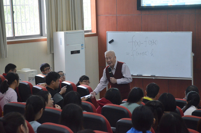 25日上午,召开了数学教育教学座谈会。林群院士与到会师生进一步阐述了自己最新的教学方法,并对Beat365数计院今后教育教学的发展提出了宝贵的建议。与会人员表示,林群院士的教学方法拓展了眼界,值得广大师生进一步深入理解思考。下午,林群院士到城南书院与部分学生进行了座谈,城南书院院长张尚晏等出席了座谈会。林群院士不仅讲解了微积分小卡片,还亲切询问了同学们的学习、生活情况,用自己学术生涯中的经历和体会,鼓励同学们努力学好专业知识,扩大知识面、打好基础,成为国家需要的人才。