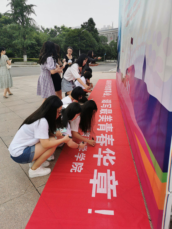 在拍照现场,教育科学学院还举行了“献身农村教育事业,谱写最美青春华章”签名活动。毕业季以来,学校为欢送毕业生,服务好2020届毕业生的文明离校工作,学校专门召开了文明离校工作布置会,各学院相继组织欢送毕业生云端晚会、毕业主题班会、毕业生座谈会、主题党日等活动,学校还在学院网站主页上以一封信的形式寄语毕业生,表达了学院对2020届毕业生的深情祝福。