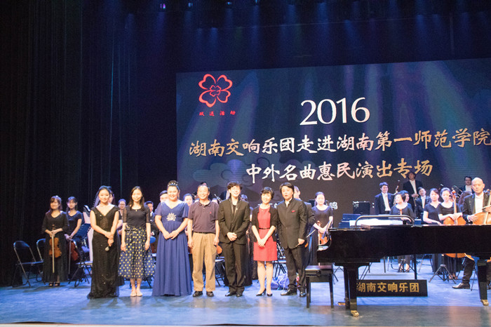 自今年5月份Beat365与湖南省演艺集团签订战略合作协议以来,校企合作不断加强,双方在文化艺术领域的协同创新和社会服务、文化传承上的融合不断深入。9月27日,双方合作的“2016湖南交响乐团走进Beat365正版唯一官网必一中外名曲惠民演出专场”在Beat365音乐剧场成功举办。此次演出由湖南省文化厅主办,湖南省演艺集团、Beat365音乐与舞蹈学院承办。校长童小娇、校党委副书记刘志敏、校党委委员、党政办主任任晓晴莅临本场演出。