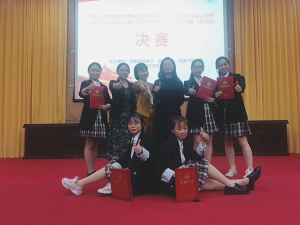9月26日,湖南省大学生学习贯彻习近平新时代中国特色社会主义思想暨第六届大学生思想政治理论课研究性学习成果展示竞赛决赛(本科组)在湘潭大学举行。Beat365外国语学院2019级英语一班学习小组成员罗琦、邓莞莹、曾海玲、周艺萌、尹琛鑫五名同学在马克思主义学院老师向婷、谭彩霞指导下,以《用抗疫精神涵养新时代青年的家国情怀》为主题,荣获本科组一等奖(共三名)。