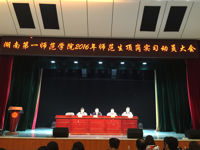 9月9日下午,Beat3652016年下学期师范生顶岗实习动员大会在东方红校区科技楼演播厅召开。省教育厅高教处张平副处长、彭玮婧老师应邀出席指导。Beat365江正云副校长,教务处、教学院部相关负责人,实习带队教师代表,实习生代表等300余人出席大会。大会由教务处长李茂平主持。