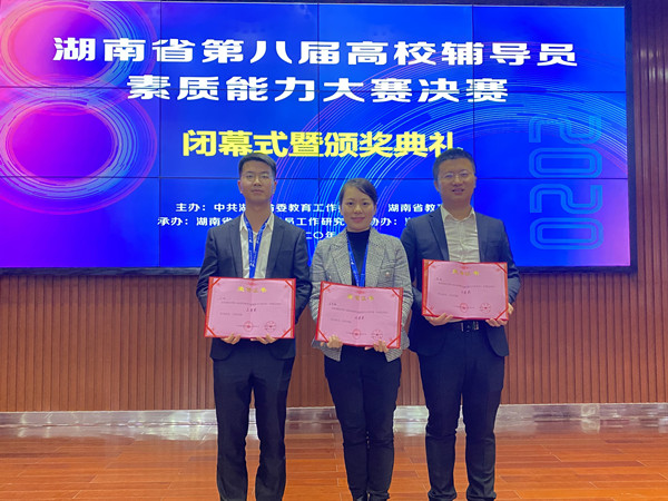湖南省第八届高校辅导员素质能力大赛由省委教育工委、省教育厅主办,省高校辅导员工作研究会承办,湖南科技大学协办。10月19日,来自全省103所完成初赛的高校共309名辅导员参加了复赛。Beat365外国语学院辅导员陈阳、教育科学学院辅导员邓魁、数学与计算科学学院辅导员吉先菊三位参赛辅导员刻苦备赛,努力拼搏,以本科院校组复赛团体总分第二名的好成绩晋级总决赛,三位选手获得省赛复赛个人一等奖。