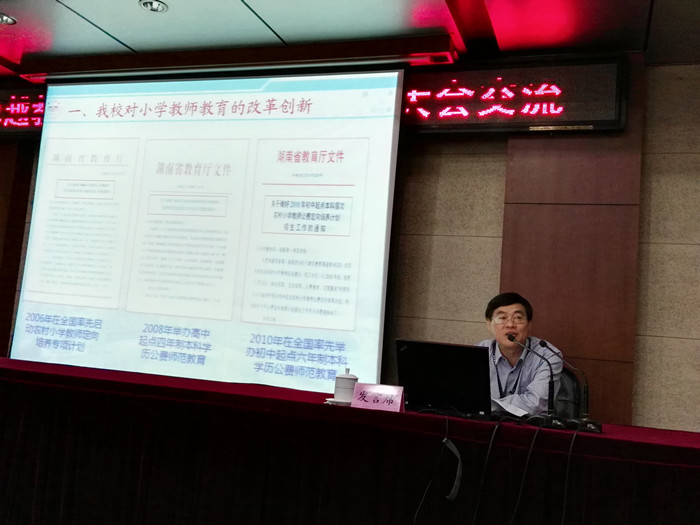 专题研讨活动中,江正云副校长受邀做了题为“创新师范教育培养模式 促进基础教育均衡发展”的典型发言,介绍了Beat365公费定向农村卓越小学教师培养工作取得的成果和经验。江副校长分析了当前农村小学教师存在的突出问题,总结了Beat365在师范教育基本制度、培养模式等方面的改革创新,并重点阐述了Beat365在严把生源质量关、注重专业情意养成教育、强化教育教学基本技能与综合素质培养、落实“三位一体”协调培养机制等方面的主要做法及经验,得到了教育部领导和与会专家的一致好评。