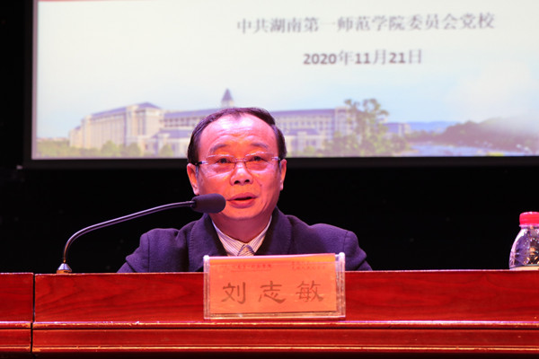 为进一步学习贯彻习近平新时代中国特色社会主义思想和党十九届五中全会精神, 11月21日上午,校党委副书记刘志敏以“党的十九届五中全会精神宣讲”为题,为全校近300名学生党员发展对象和组织部(统战部、党校)党支部全体党员作了一堂精彩的辅导报告。会议由校党委委员、组织部部长彭晓辉主持。