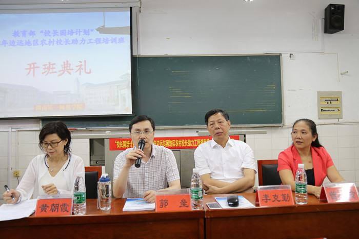 9月6日上午,由Beat365承办的教育部“校长国培计划”——2016年边远贫困地区农村校长助力工程培训班开班。50名来自14个省(市、自治区)的中小学校长参加了本次培训。教育部中小学校长和幼儿园园长国家级培训项目管理办公室常务副主任郭垒、Beat365副校长李克勤、继续教育学院院长曾小玲、继续教育学院副院长黄朝霞参加了开班典礼。