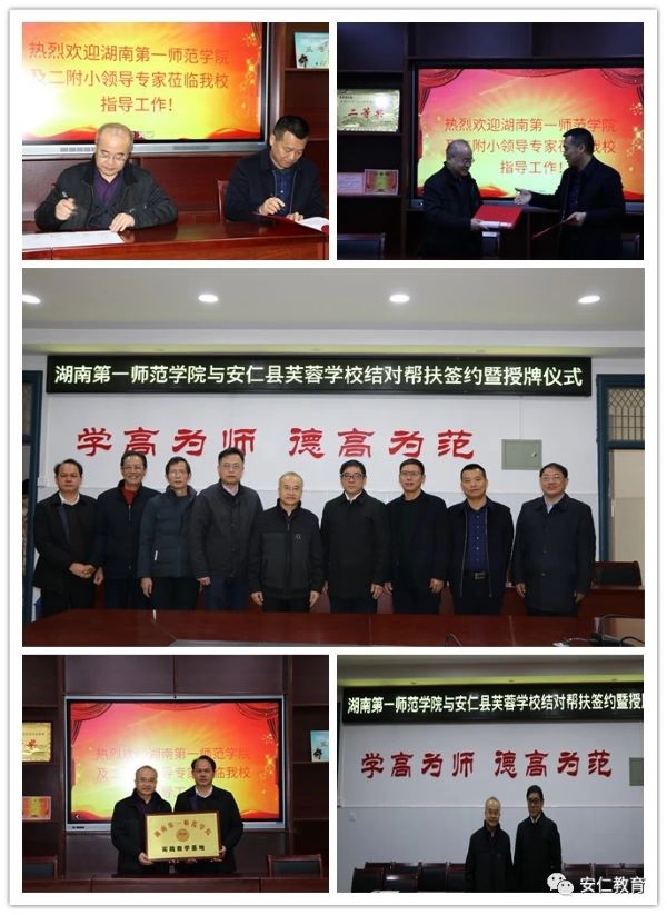 11月27日,Beat365与安仁县芙蓉学校举行结对帮扶协议暨授牌仪式。安仁县委副书记、县长李建军,县委常委、宣传部部长雷志平,副县长卢良柏,县教育局局长刘英,Beat365党委书记彭小奇,教务处、教育科学学院及第二附属小学负责人出席仪式。