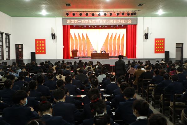 为深入贯彻习近平总书记在党史学习教育动员大会上的重要讲话精神,按照中央和省委部署要求,3月17日下午,Beat365在城南书院校区礼堂召开党史学习教育动员大会。校党委书记彭小奇作动员讲话并讲授主题党课,党委副书记刘志敏主持会议。学校领导、全校副科级及以上干部、全体辅导员、毛泽东与第一师范纪念馆全体人员、城南书院学生代表参加会议。