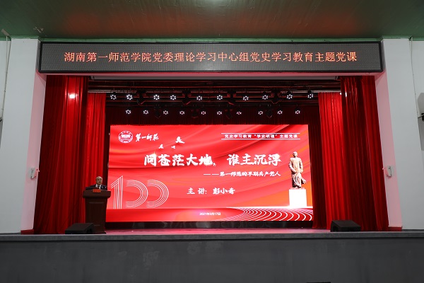 动员会结束后,彭小奇以《“问苍茫大地,谁主沉浮”——第一师范的早期共产党人》为题,通过讲述毛泽东为代表的湖南早期共产党人,特别是一师的早期共产党人的奋斗历程,引导师生传承红色基因,发扬光荣的革命传统。