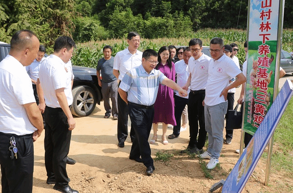 考察三黄鸡林下养殖基地