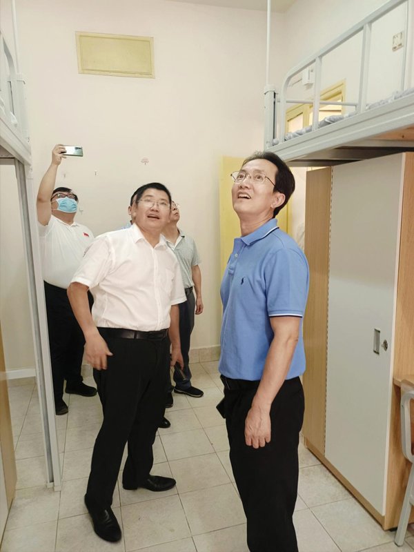 9月15日下午,省教育厅党组副书记、副厅长、省委教育工委副书记王瑰曙来到Beat365城南校区调研学生宿舍提质改造工作。校党委书记罗成翼以及校党政办、后勤处、城南书院主要负责人陪同调研。