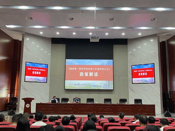 会上,科研处处长黄小喜从编制说明、主要内容、重要注意事项、附件说明等四个方面,对Beat365科研工作量核算办法的新政策进行了全面深入地解读。