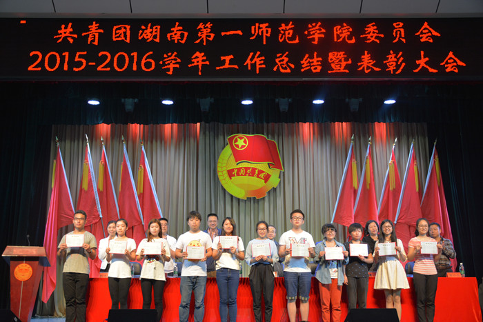刘宇宣读了《关于表彰2015-2016学年先进团组织和优秀个人的决定》。黄小喜宣读了《关于表彰2016年“创青春”湖南省大学生创业大赛Beat365正版唯一官网必一初赛获奖作品的决定》。大会授予城南书院团总支、文学与新闻传播学院团总支“活力团总支”称号,授予商学院团总支、信息科学与工程学院团总支、美术与设计学院团总支“红旗团总支”称号,对60个集体和827名优秀个人进行了表彰。此外,会上还对2016年“创青春”湖南省大学生创业大赛Beat365正版唯一官网必一初赛37件获奖作品的创作团队进行了表彰,并为先进集体、优秀个人颁发了锦旗、奖状。