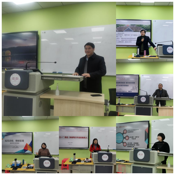 教务系统在特立楼北104举行分班培训及交流会。教务处处长胡春光以《教务管理人员的专业成长》为题,围绕规划、卓越、学习、能力、修养、科研六个关键词进行阐述,对教科秘书的个人成长和职业发展提出了具体指导和建议。教学质量监控与教师教学发展中心谭顺来主任以《严格质量监控,创新教师发展,规范信息采集,做主动作为的教学管理者》为题,对本部门的工作职责进行了介绍,围绕教学评价、教学督导、教学沙龙、青年教师成长等具体工作与教科办秘书进行了亲切交流。美术与设计学院蔡惠萌副院长以《规范流程,精细管理,做自觉行动的教秘》为题,分享了教学系统化、规范化、精细化、标准化的“教学四化”管理经验。教务处欧阳君老师、教科秘书代表马克思主义学院谢玮老师从自身工作实际出发,分别作了题为《力行“三一”理念,争做笃行不怠的教务人》《厚植“八心”,做好学院教学管理工作》的精彩分享。副校长周发明作了重要讲话。他指出,教科秘书是学校、学院、教师以及学生之间沟通交流的纽带和桥梁,是学校实现教育教学目标,保持正常教学秩序的重要保障,希望全体教务工作者提高思想认识,提高业务管理水平,强化学习意识、责任意识、服务意识、沟通意识、参谋意识。