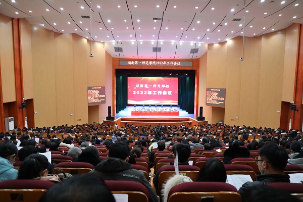 2月26日,东方红校区田汉剧场内气氛热烈,学校2022年工作会议在这里召开,全体校领导、党委委员、全体教职工千余人参加了此次大会。党委书记罗成翼作主题报告,校长童小娇主持会议。