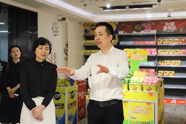 座谈会后,童小娇一行参观了公司办公区、产品展厅等。杨林广详细介绍了盐津铺子公司的经营理念、发展战略、人才战略、营销战略等。双方表示今后将全面推进在实习实践、人才交流与互聘、技术研发、技术培训、创新创业与就业、红色党建等方面的合作。