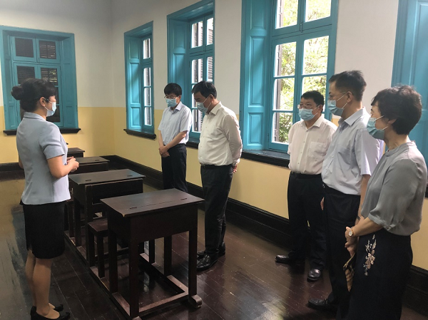 何报翔一行走访了旧址前楼大厅、大礼堂、八班教室、诗词展厅、良师益友雕塑群、八班寝室、城南古井等旧址纪念点,参观了“一代伟人从这里起步”主题陈列展厅和“58名早期党员中的湖南人”特展,听取了学校关于“一四”发展战略、红色一师建设方案及红色教育成效的汇报。