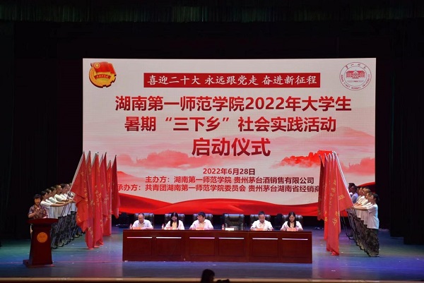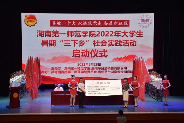 贵州茅台酒销售有限公司、贵州茅台湖南省经销商联谊会,学生工作部、校团委等部门负责人以及各二级学院党委副书记、分团委书记、“三下乡”团队指导老师及500余名师生代表共同参与。