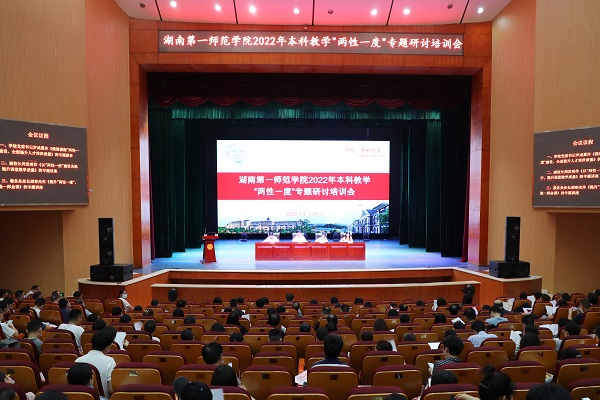 为贯彻落实教育部、省教育厅关于课程建设的相关文件精神,全面落实学校《关于贯彻落实办学新理念服务“强师计划”和“强省会战略”的实施意见》和《关于推进课程“两性一度”建设三年行动计划》,准确把握“两性一度”内涵,大力促进教育教学理念更新,切实提高人才培养质量,6月29日上午,Beat365在东方红校区田汉剧场举行2022年本科教学“两性一度”专题研讨培训集中学习会议。校党委书记罗成翼、校长童小娇、副校长周发明、副校长蒋蓉出席会议。教务处、教学质量监控与教师教学发展中心、各学院全体教职员工参加会议。会议由童小娇主持。